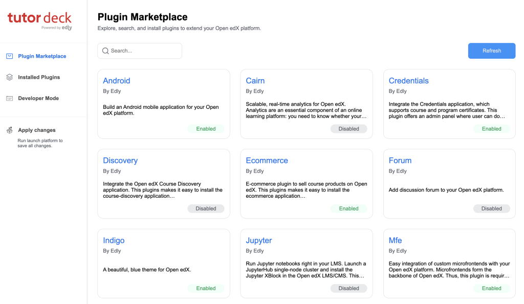 يسعدنا أن نعلن عن إطلاق مجموعة المعلم، واجهة جديدة تمامًا مدعومة بواسطة Edly تجعل اكتشاف المكونات الإضافية وتثبيتها وإدارتها لنسخة Open edX الخاصة بك أسهل من أي وقت مضى.